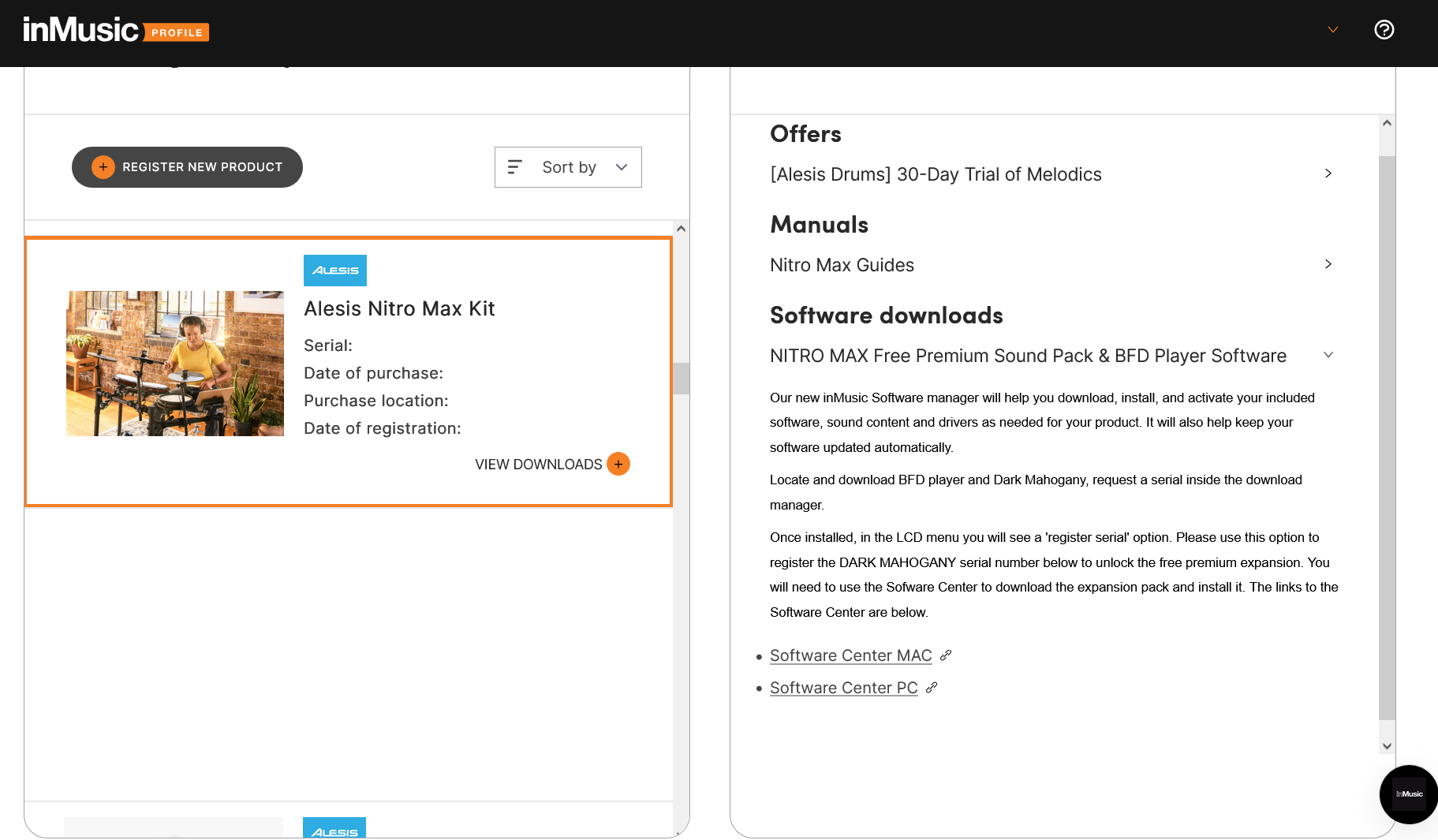 My Alesis Nitro Max refuses to register in inMusic. This may be an issue caused by the fact that I see two “Nitro Max” options in inMusic, but I don’t know what to do about that, either.