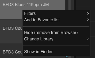 did you install the conent to an external drive, bfd installs presets to a default folder and sometimes they show up as doubles if you have them on a different drive, best solution for me has always been to delete which ever ones I don’t want. Right click the preset and say show in finder, if it shows the path that you are using, keep, if it points to a folder you aren’t using then delete it. Hope that makes sense? You can either hide it (remove from browser) or physically go to the folder and delete them from there, then close and restart bfd, they should be gone if you do it that way.